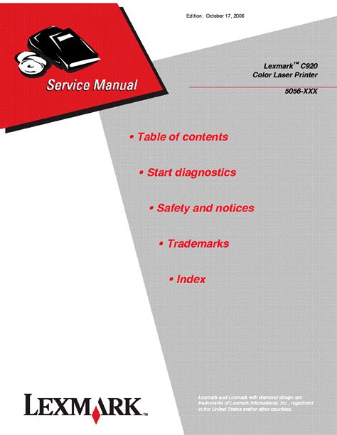 Presently you are looking with regard to an Lexmark C920 Color Laser Printer Service Repair Manual example that we provide here within some type of document formats like as PDF, Doc, Power Point, and also images that will make it easier for you to create an Lexmark C920 Color Laser Printer Service Repair Manual yourself. For a clearer look, you can open a few examples below. All the examples about Lexmark C920 Color Laser Printer Service Repair Manual on this site, we get from a number of sources so you may create a better file of your own.