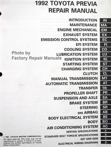 At present you are looking for an 1992 Toyota Previa Service Repair Manual Software example that we provide here inside some form of document formats many of these as PDF, Doc, Strength Point, and in addition images that will make it simpler for you to create an 1992 Toyota Previa Service Repair Manual Software yourself. For a more clear look, you can open a few examples below. Each of the good examples about 1992 Toyota Previa Service Repair Manual Software about this website, we get from a number of sources so you can create a better file of your own.